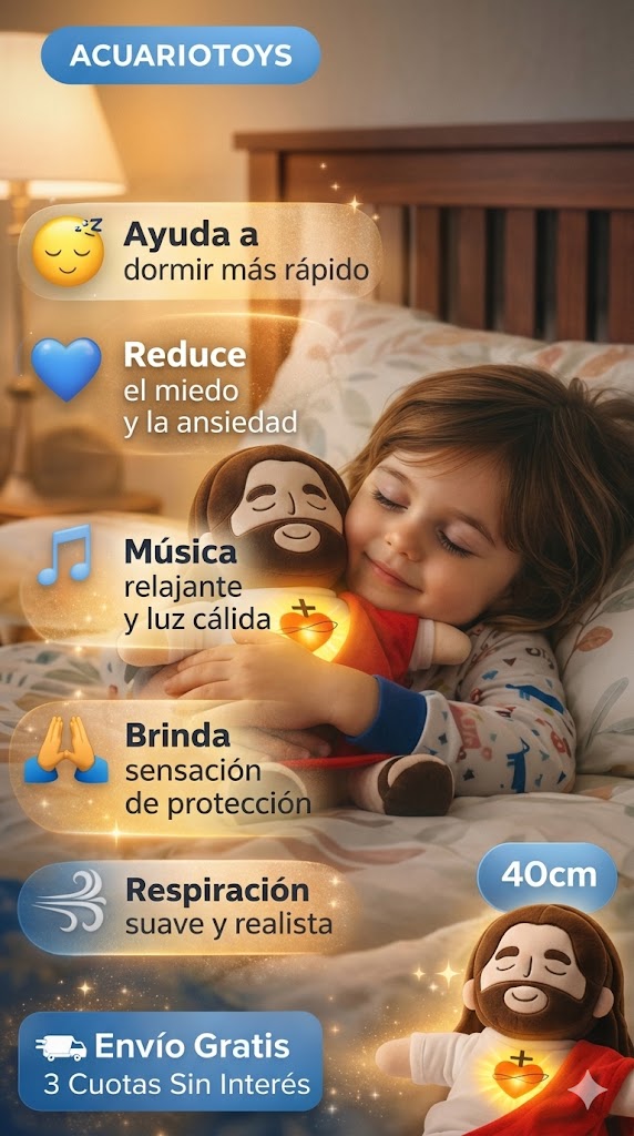 El peluche tiene un sistema interno que simula una respiración suave, emite luz cálida y reproduce sonidos relajantes para ayudar a calmar y dormir. IMPORTANTE PRESIONAR LA PATITA IZQUIERDA